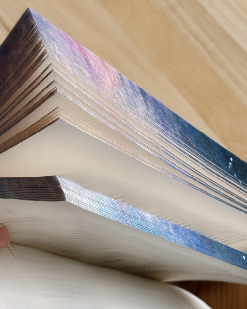 Bei den meisten Cover-Match Farbschnitten plane ich nicht groß, sondern lege einfach los. Zuerst gibt es dann immer eine erste Schicht mir ungefähr passenden Farben. Dabei entwickle ich direkt auf dem Buchschnitt ein Konzept, wie alle Seiten miteinander verbunden werden können. Bei manchen Farbschnitten merke ich an dieser Stelle, dass es nicht ohne Plan geht und ich male dann noch ein Konzept auf meinem Tablet. Aber bei Atmosphere hat es super geklappt.